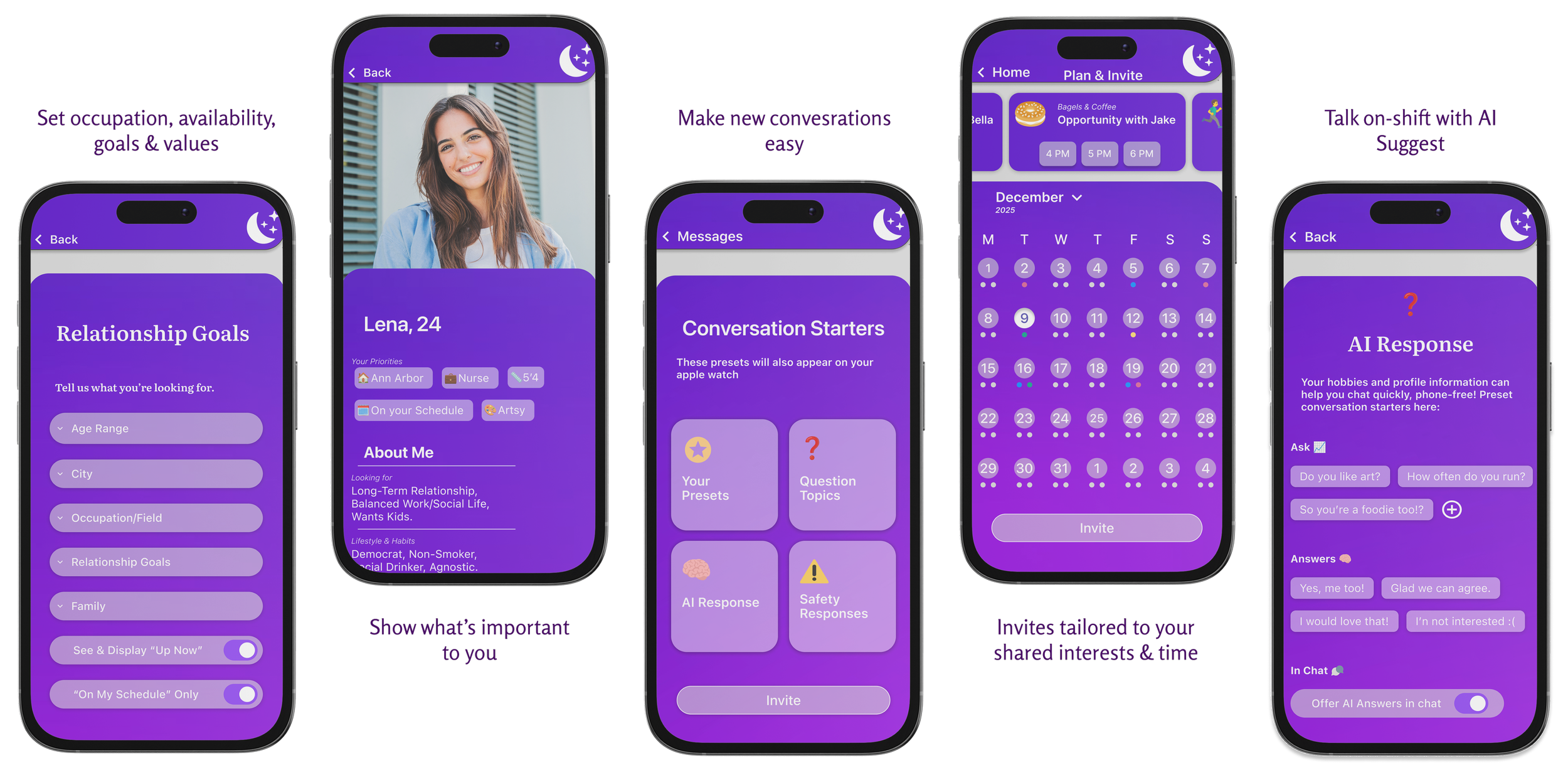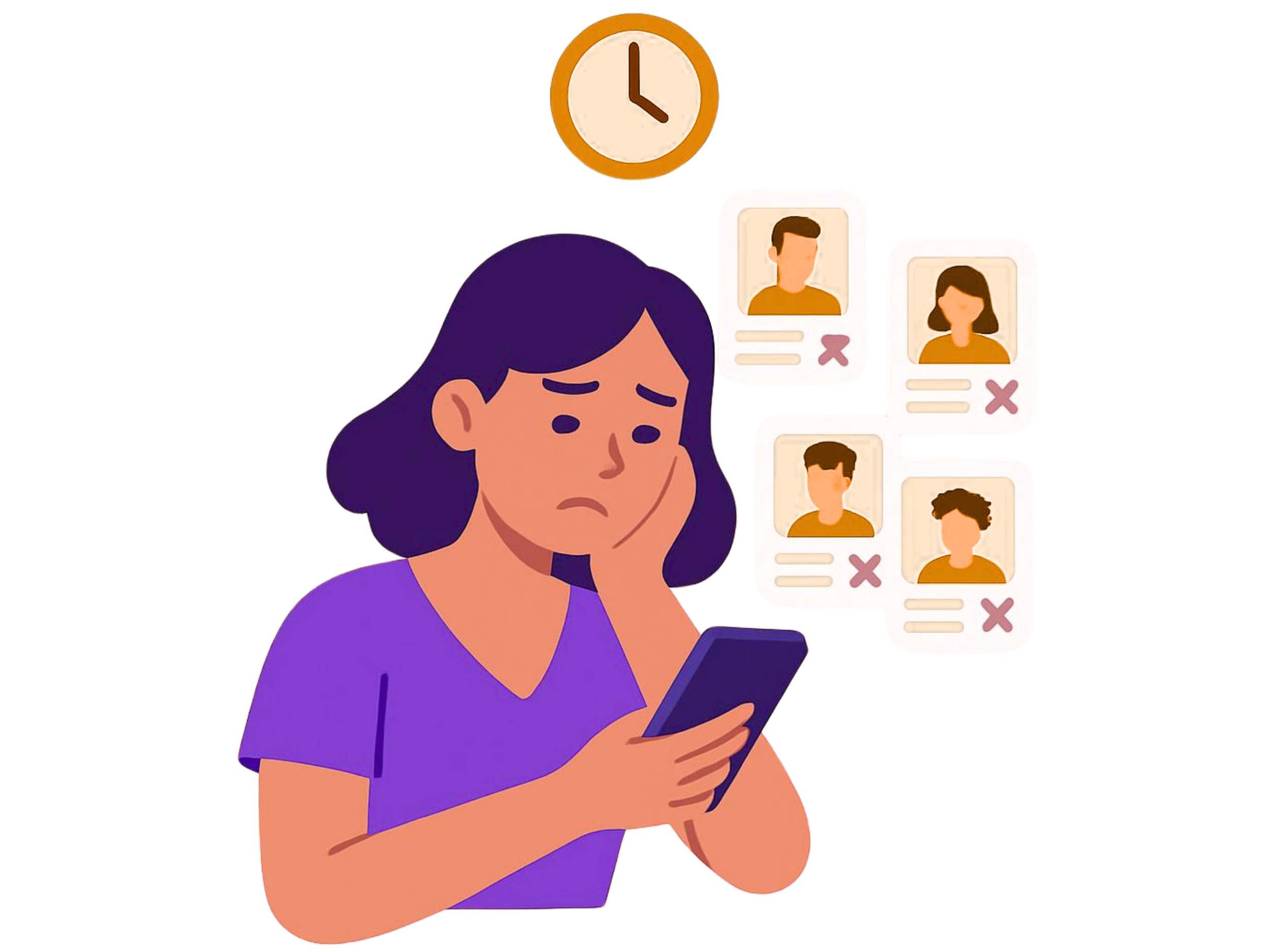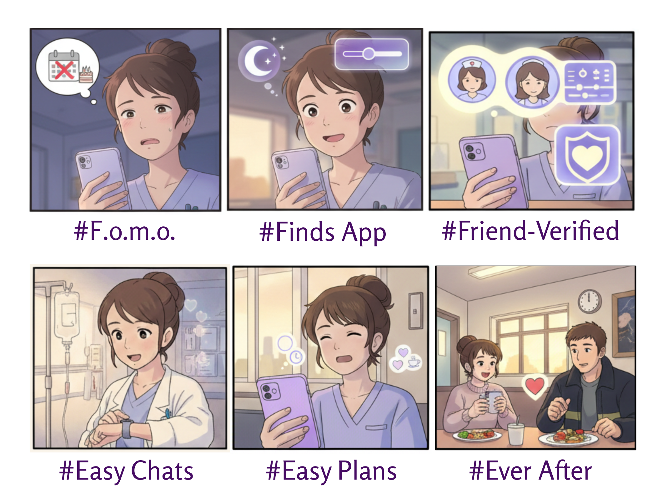 Users on typical dating apps struggle to connect, communicate, and make plans due to their conflicting and demanding work schedules.