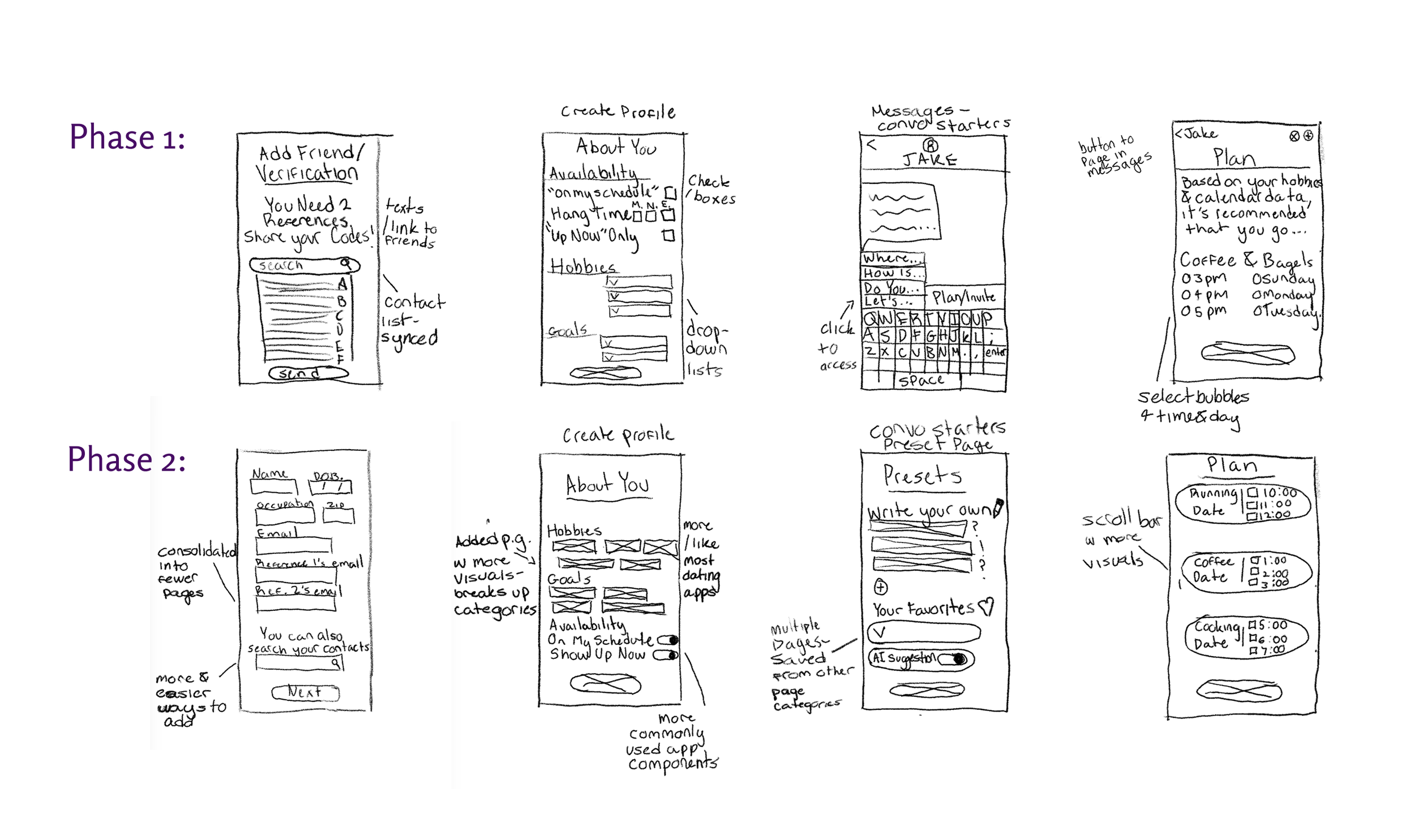 Calendar Overlaps was a key solution, which would use data synced from calendar apps, like Google or Apple’s. , It would find shared availability, shared “gaps” in their day.